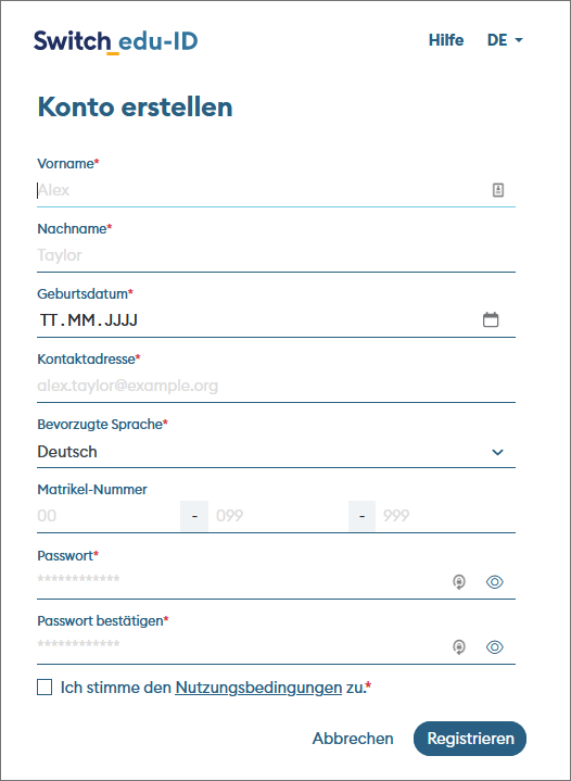 - Akzeptiere die Nutzungsbedingungen und klicken auf «Registrieren».