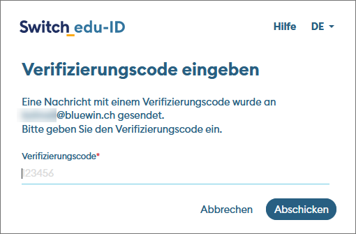 3 – Von ‘SWITCH edu-ID’ (Absender eduid-support@switch.ch) erhältst du anschliessend eine E-Mail mit dem Verifizierungscode. Gebe nun diesen Code ein: