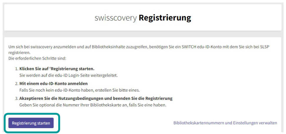 5 – Gehe zu https://registration.slsp.ch/?iz=rzs/?lang=de und starte die Registrierung: