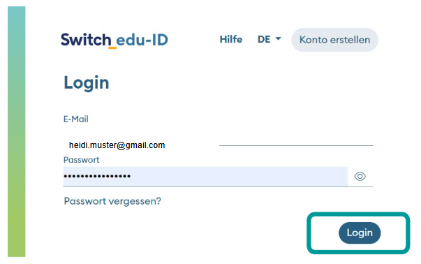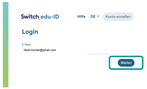 6 -Melde dich mit der E-Mail-Adresse deiner SWITCH edu-ID an:
